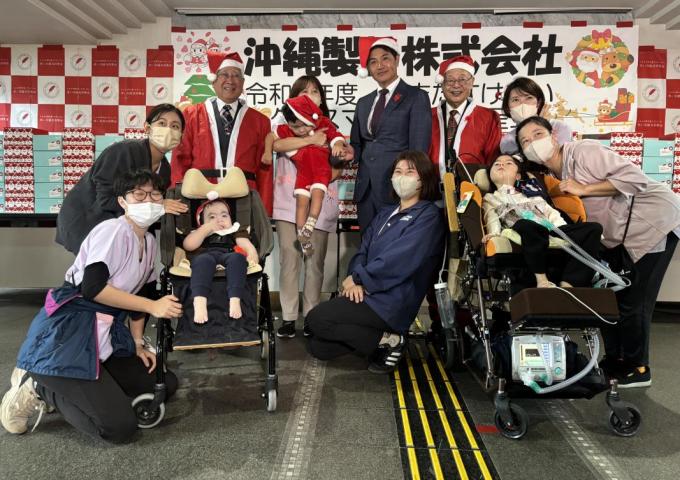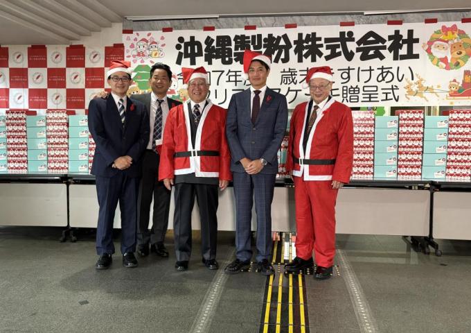 12月24日午前、県総合福祉センターで沖縄製粉株式会社様から今年もクリスマスケーキ350個が贈られました。